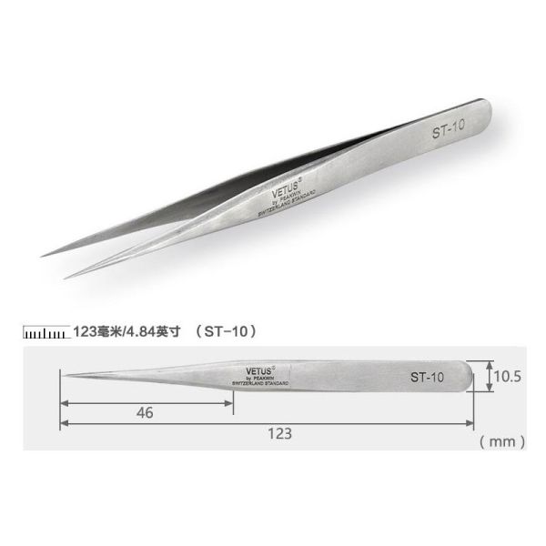 Vetus tweezers have some characteristics: ultra precise, high accuracy,anti-magnetic, anti-acid, superhard but elastic